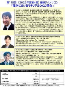 第118回(2025年度第4回)産研テクノサロン「産学におけるマテリアルDX の現在」